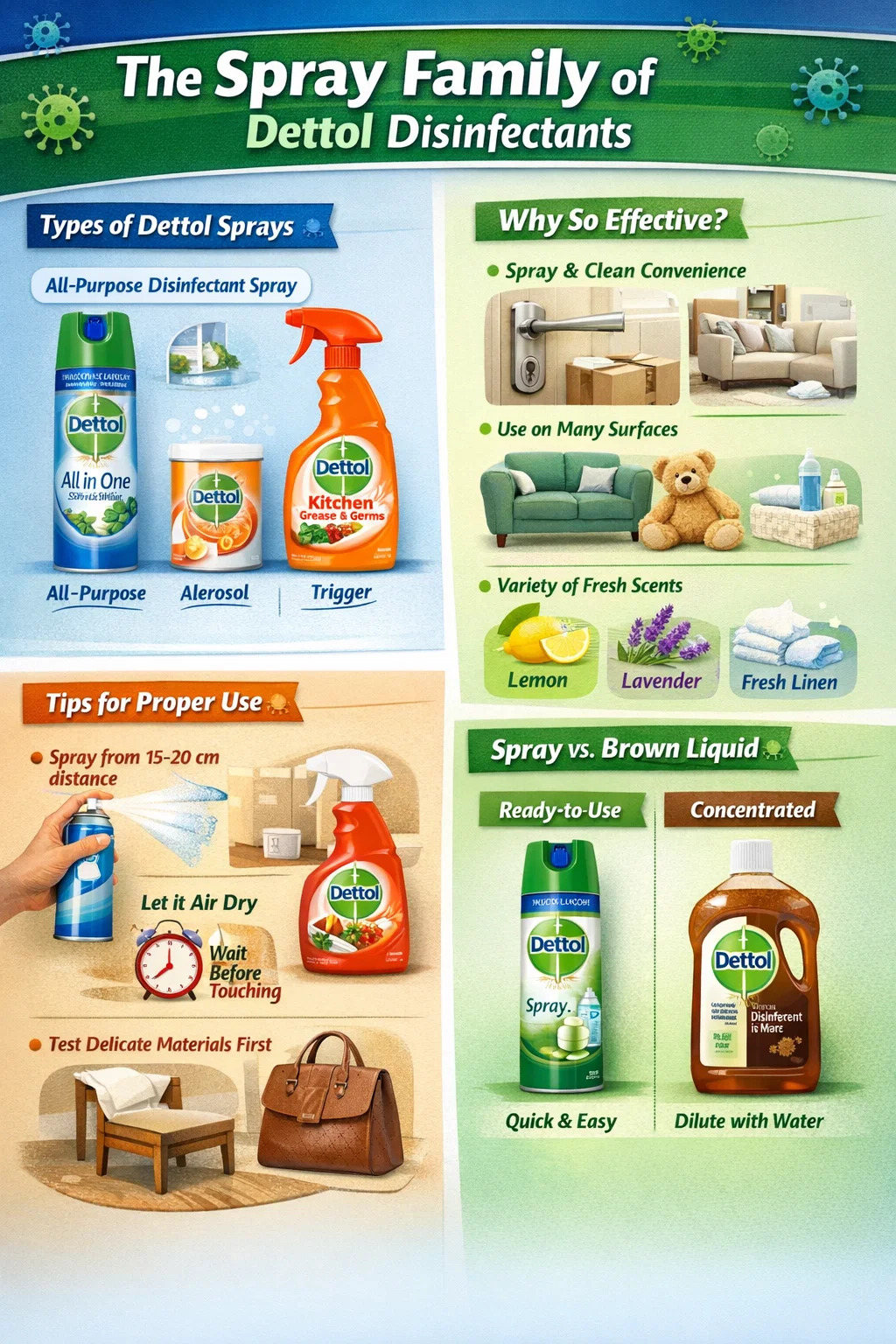 Các sản phẩm xịt của Dettol không chỉ có một loại duy nhất mà thường được chia thành các dòng sau: